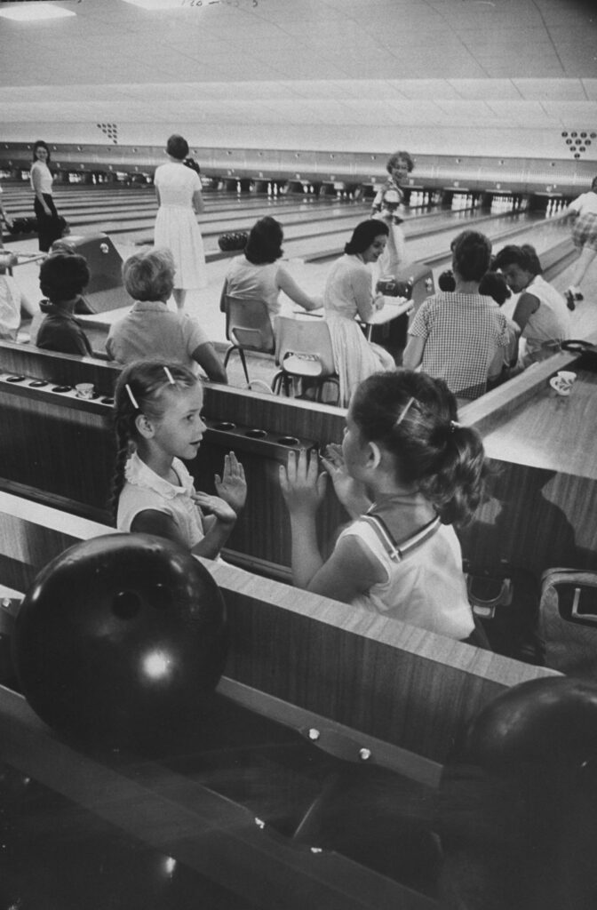 According to LIFE this trend was the end result of a domino effect that began with the invention of automated pin-setting machines in the 1950s. These new machines prompted owners to renovate their bowling alleys. And having undertaken these renovations, the owners then sought to bring in more customers—especially during the daytime. “They began selling the sport to women with telephone campaigns, free lessons, and most of all, free baby sitting,” LIFE explained.